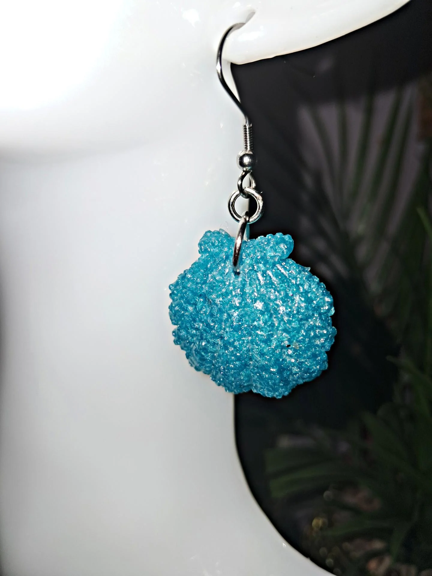 Boucles d'oreilles en résine époxy bleu ciel en forme de coquillage ,montées sur acier inoxydable argenté. Un bijou frais ,lumineux et inspiré de l'océan.