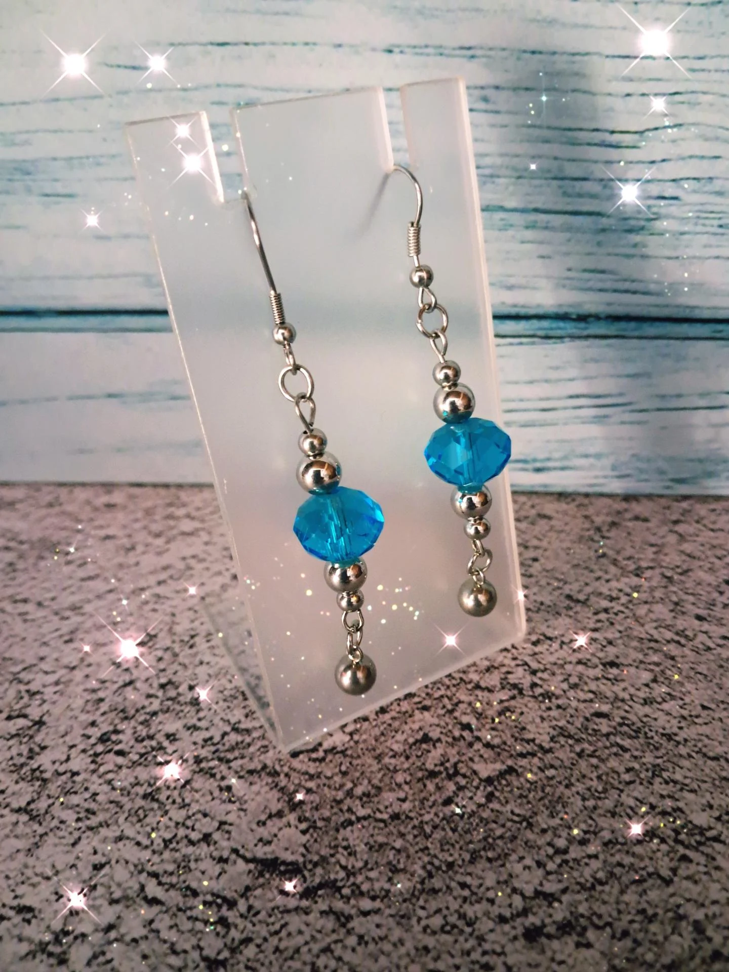 Boucles d'oreilles élégantes en cristal bleu facetté,montées sur une structure en acier inoxydable.Leur éclat captivant et leur design raffiné apportent une touche de lumière à toutes vos tenues.