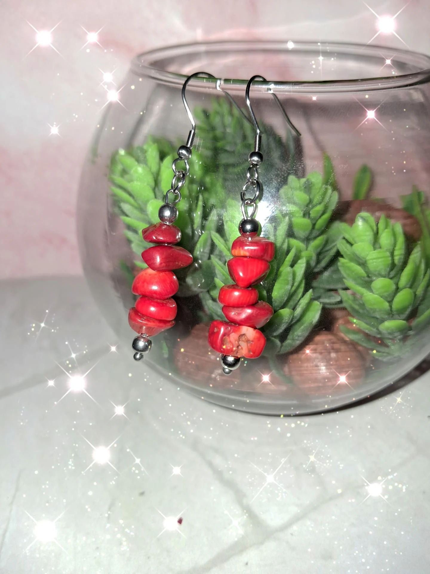 Boucles d'oreilles raffinées ,composées de pierre de corail véritables,montées sur une structure en acier inoxydable argenté.Un bijou élégant ,vibrant et naturel.