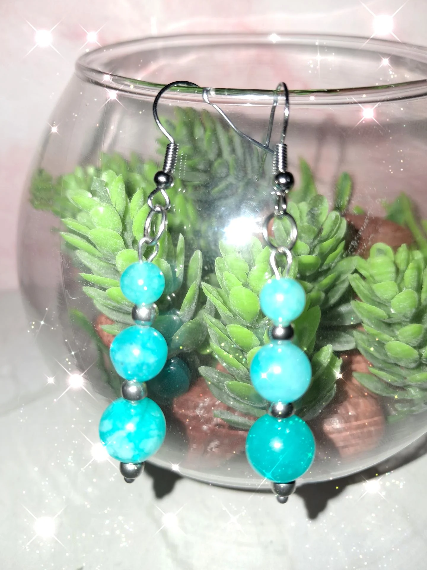 Elégantes boucles d'oreilles composées de véritables perles d'agate bleue,montées sur une structure en acier inoxydable argenté.Raffinées légères et intemporelles.