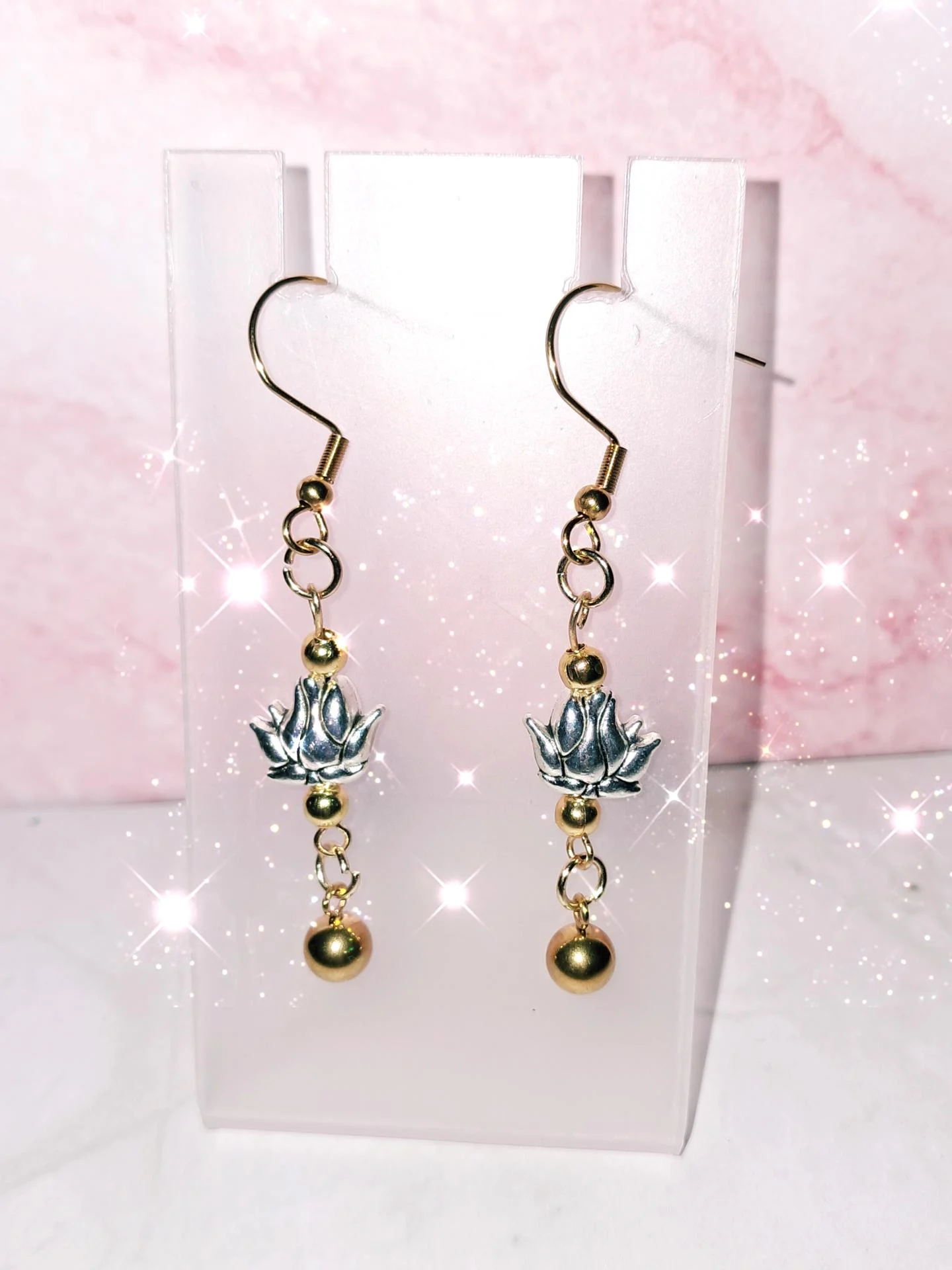 Sublimes boucles d'oreilles pendantes en acier inoxydable doré et argenté pour le lotus.Le lotus symbolise la pureté et l harmonie.