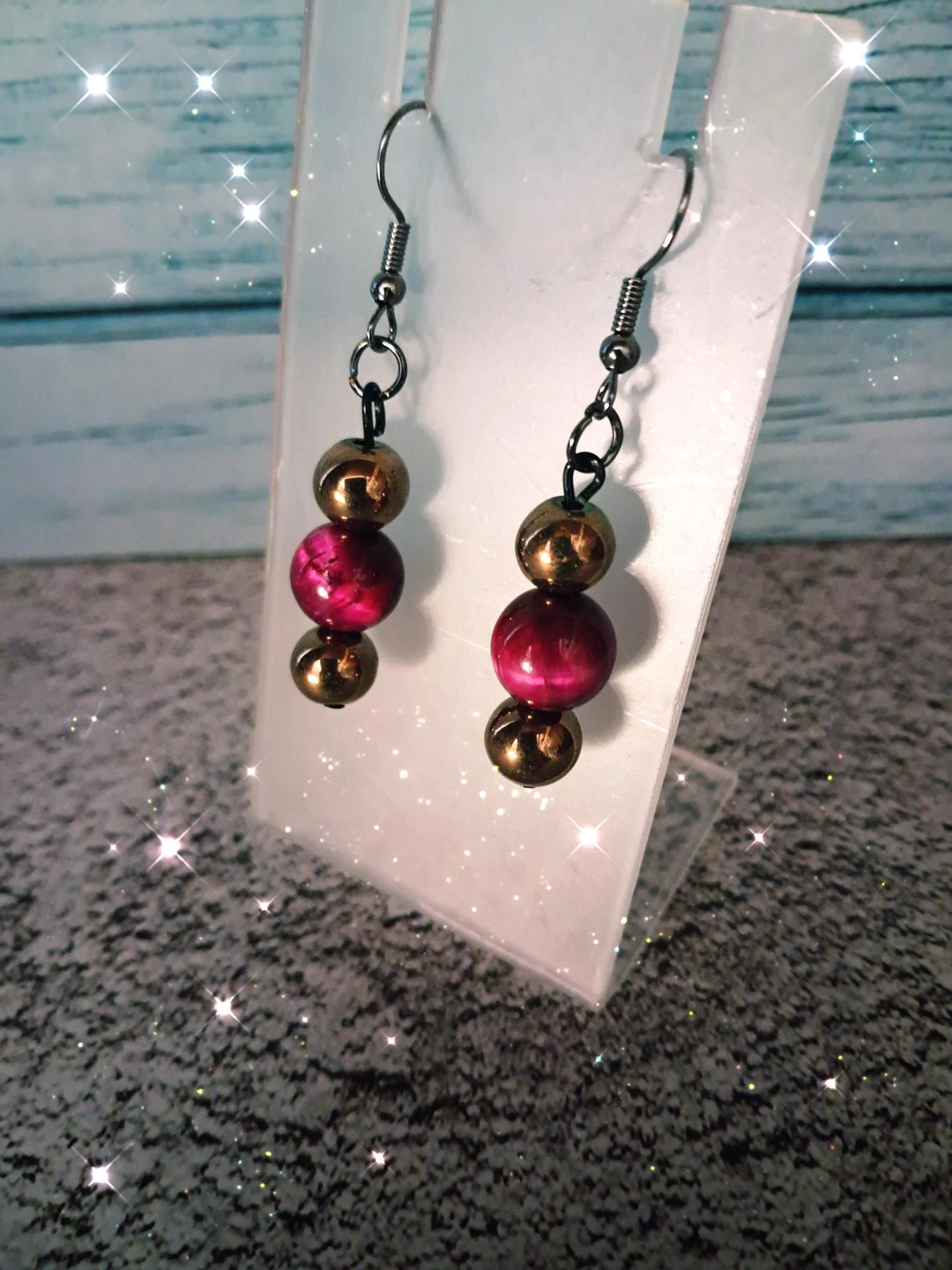 Boucle d'oreilles élégantes & puissantes,composées de pierres naturelles d'obsidienne noir café,d'oeil de tigre rose & montées sur une structure en acier inoxydable noir pistolet.Une création raffinée,symbole d'équilibre et de protection.
