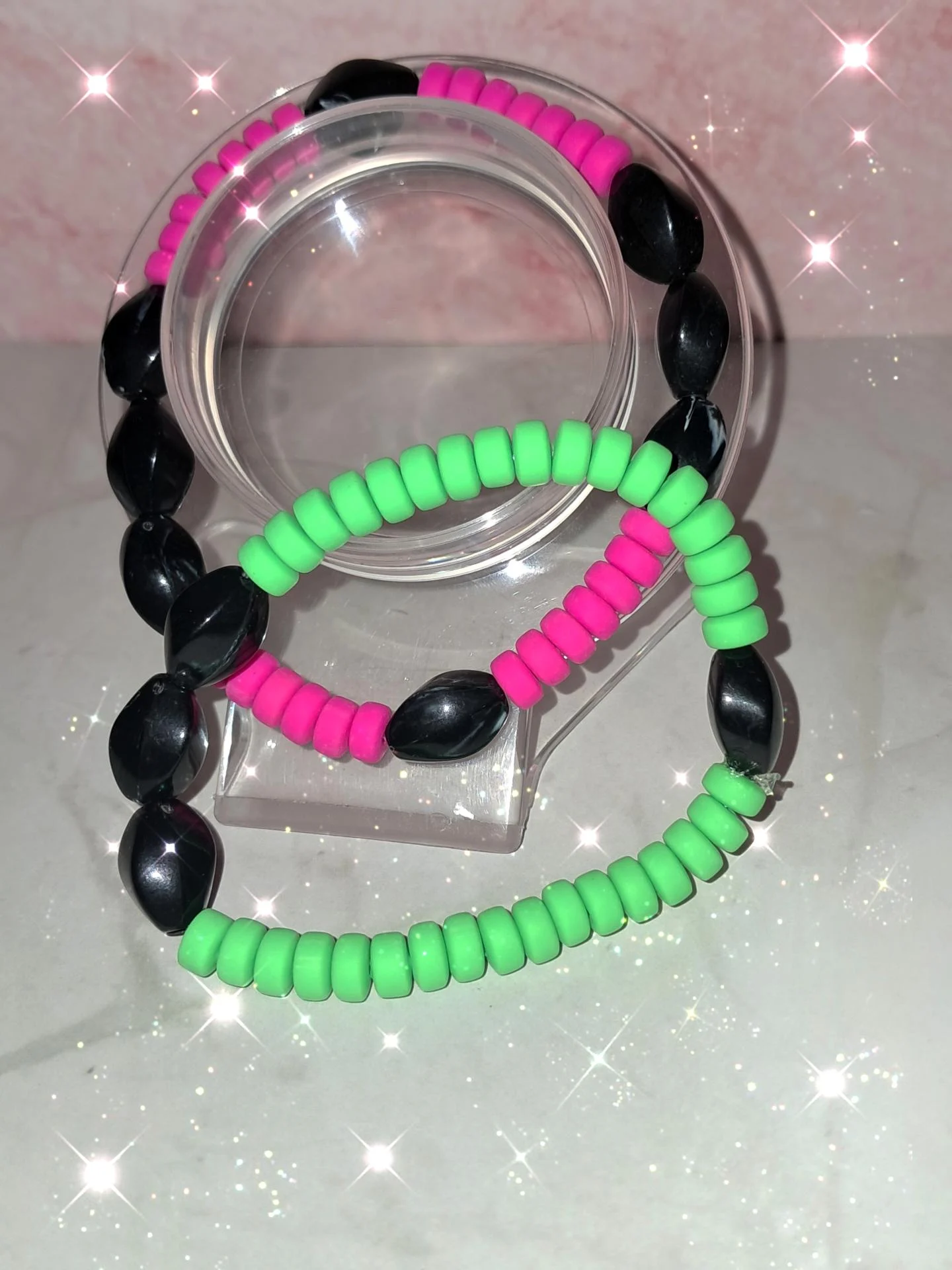 2 Bracelets en argile polymère & acrylique aux couleurs fluorescentes