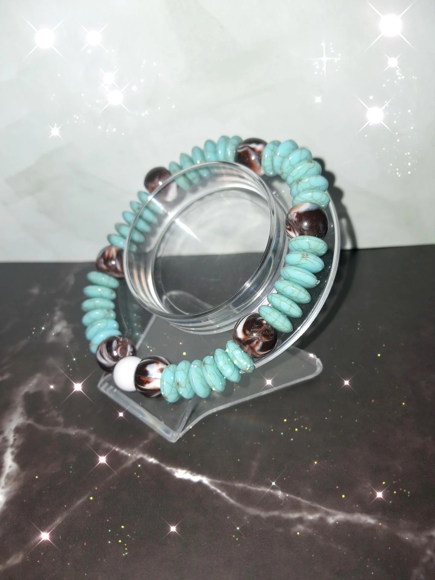 Bracelet extensible en acrylique bleu/vert marron dégradé de blanc