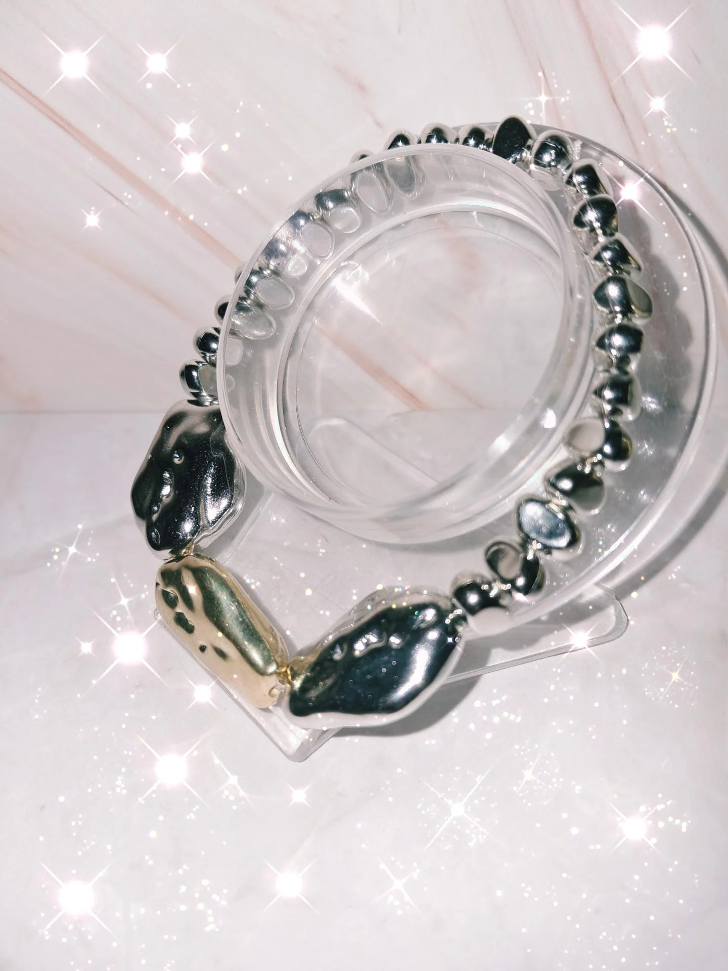 Bracelet acrylique oriiginal argenté et doré-perles irrégulières