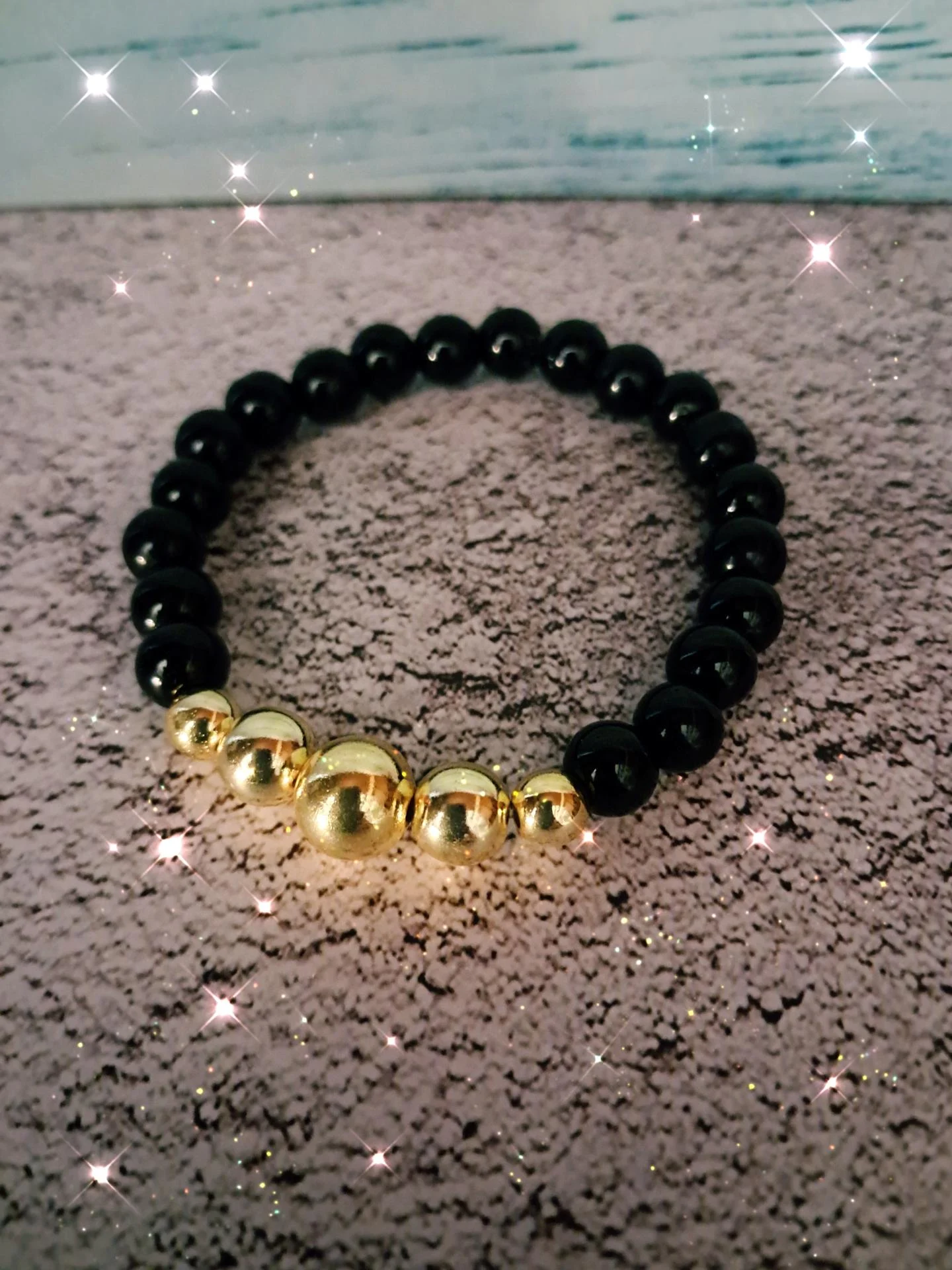Bracelet ultra chic extensible en pierre d'hématite & pierre d'onyx