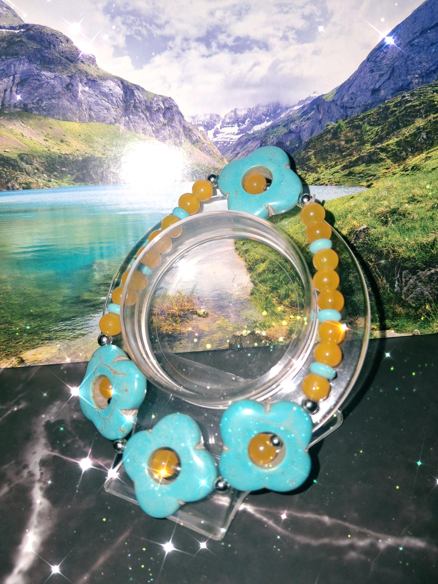 Bracelet fleur en pierre de turquoise et perles jaune