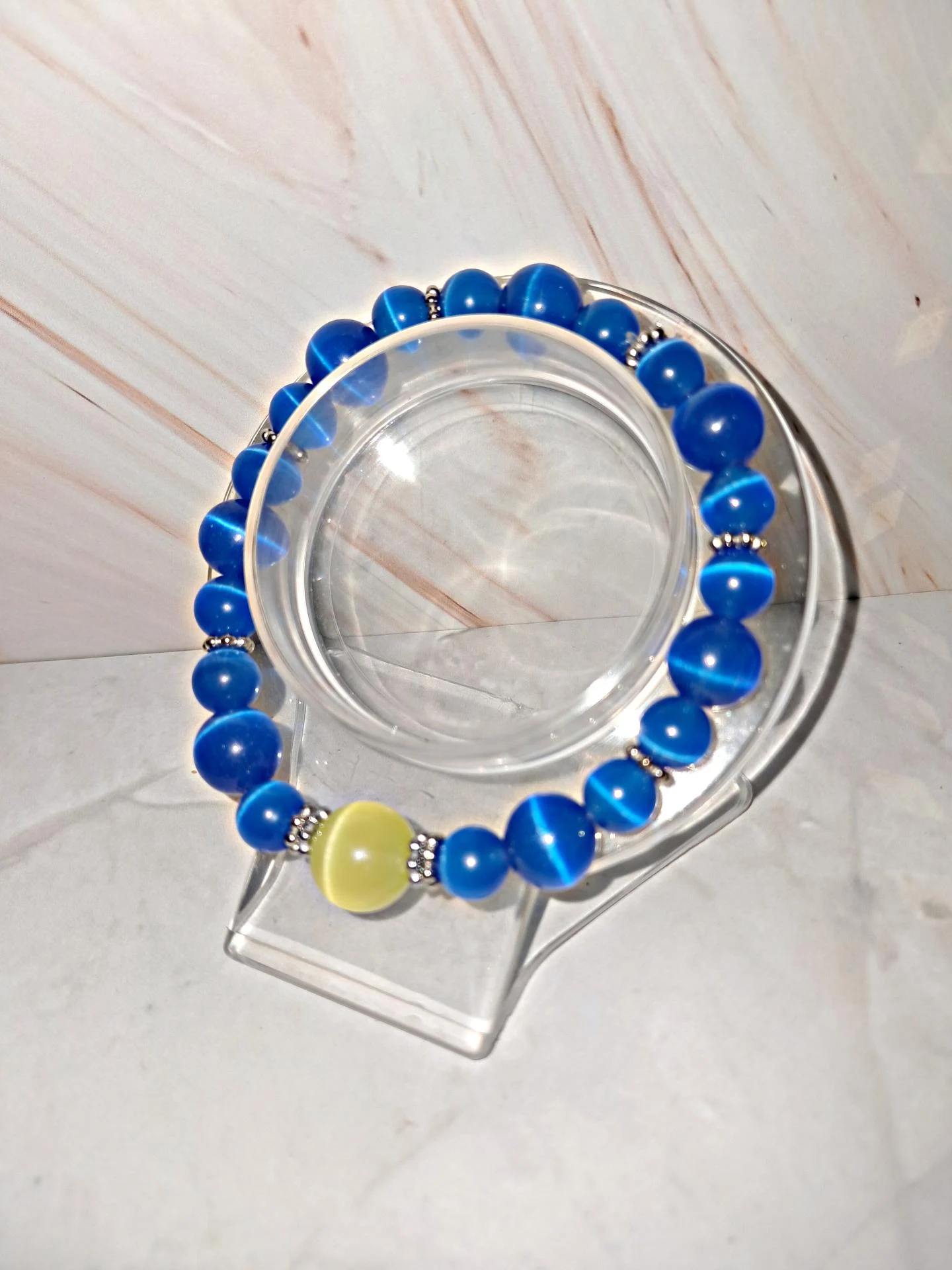 Bracelet oeil de chat bleu et jaune