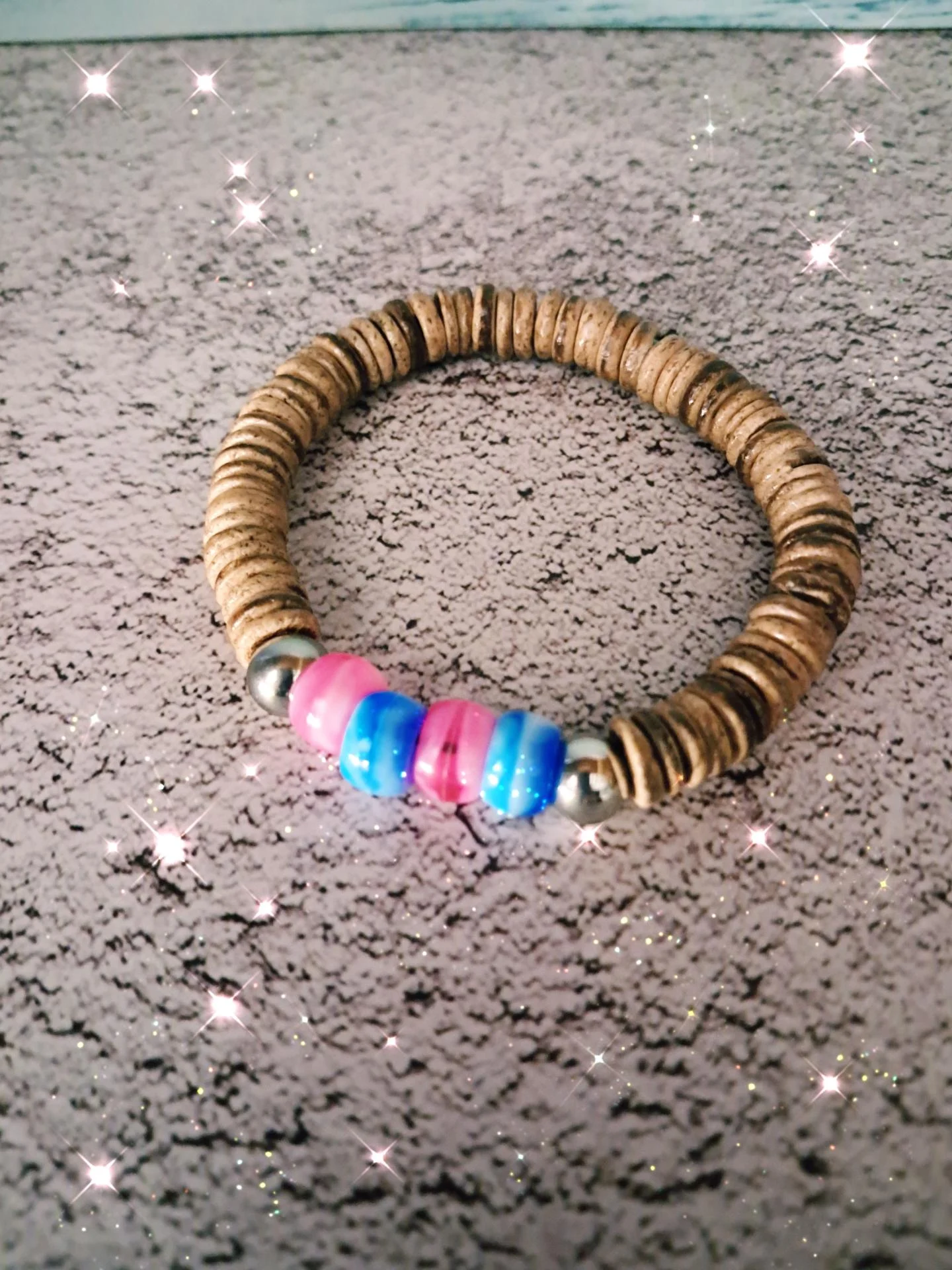 Bracelet extensible aux couleurs tendres en bois de coco vernis & acier inoxydable