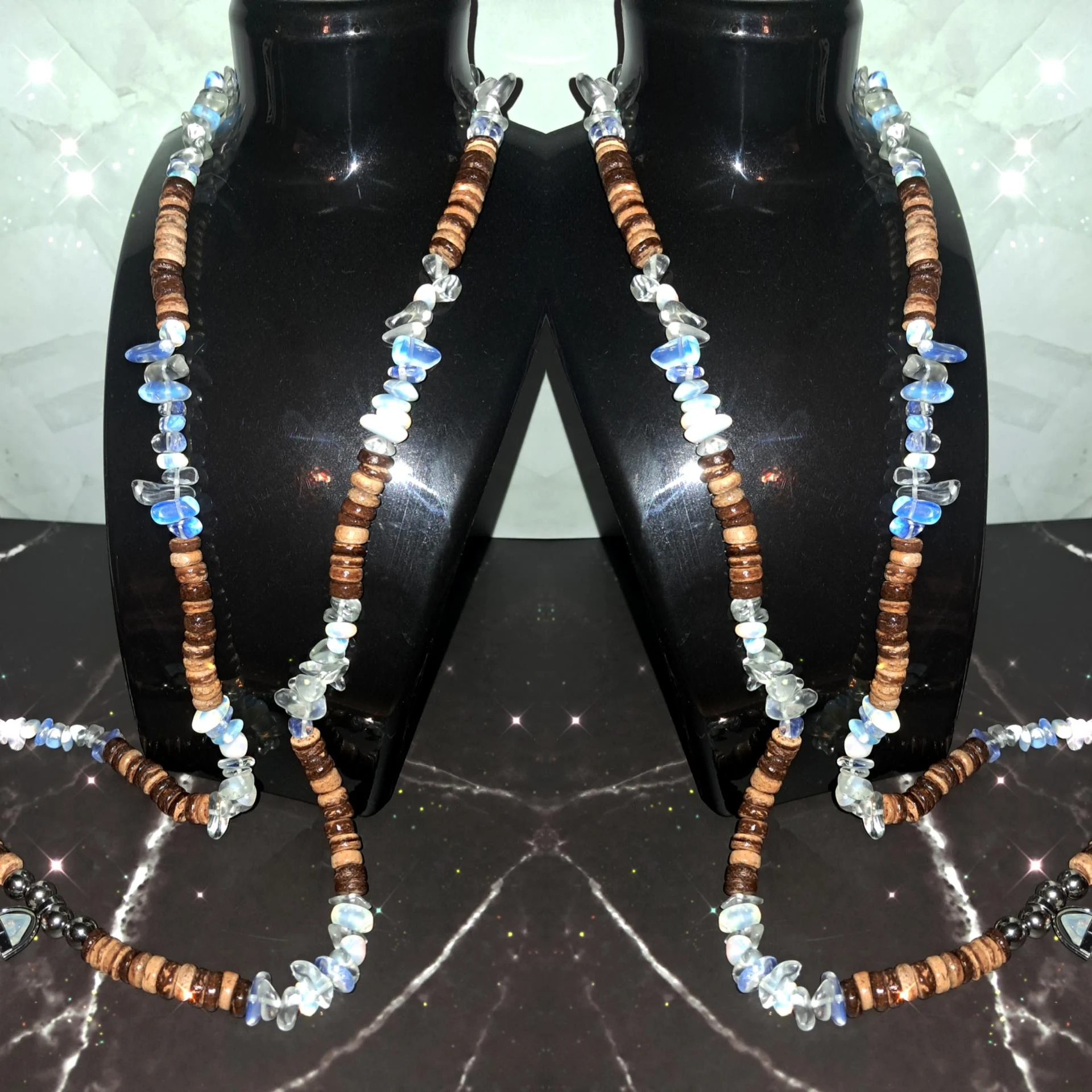 Collier en bois & pierre d'opale
