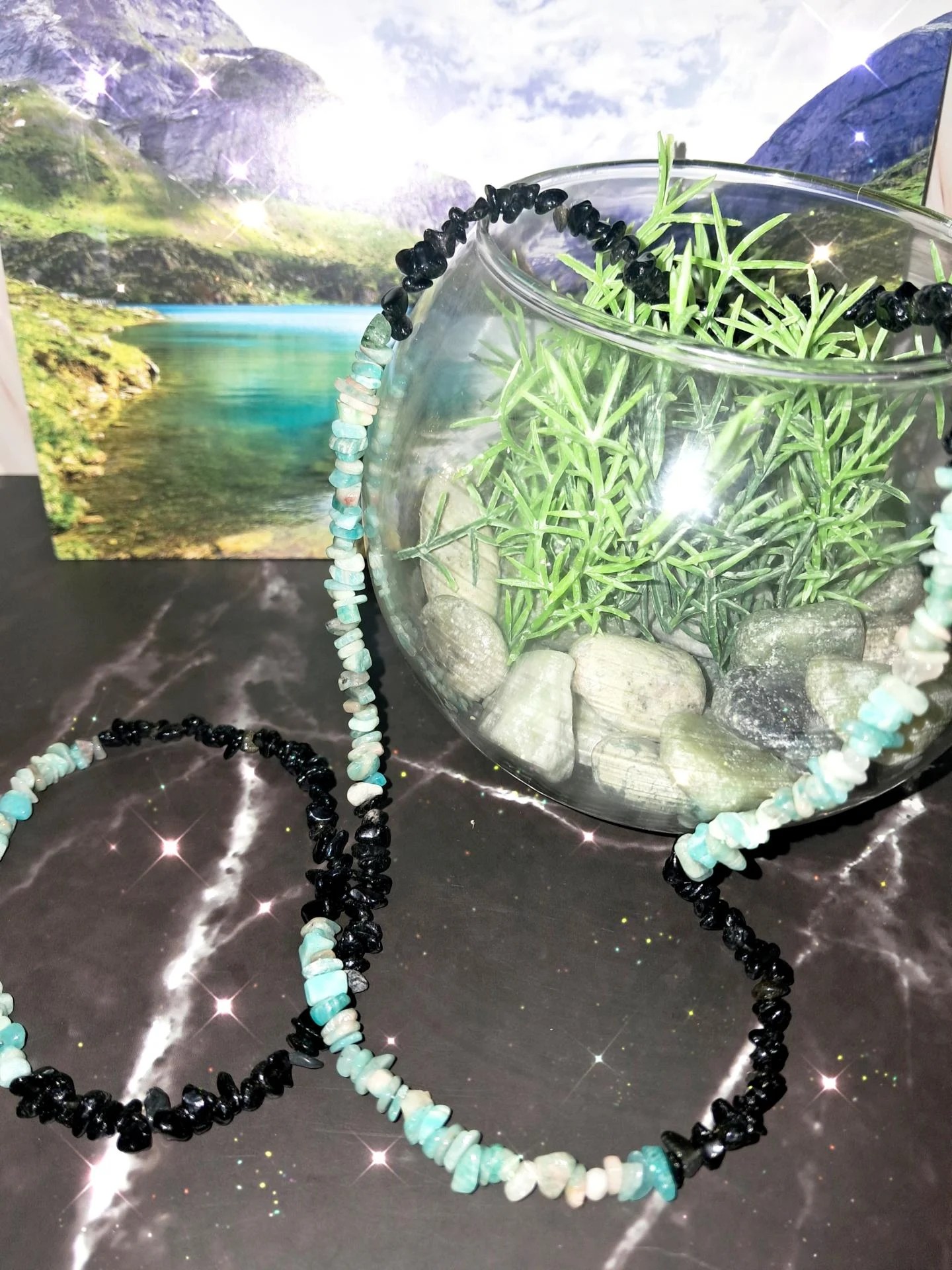 Collier en pierre Amazonite et Obsidienne céleste