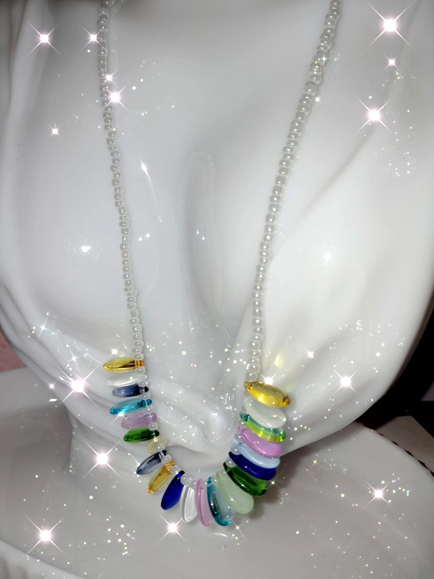 Collier multicolore en verre-perles gouttes & chaine réglable