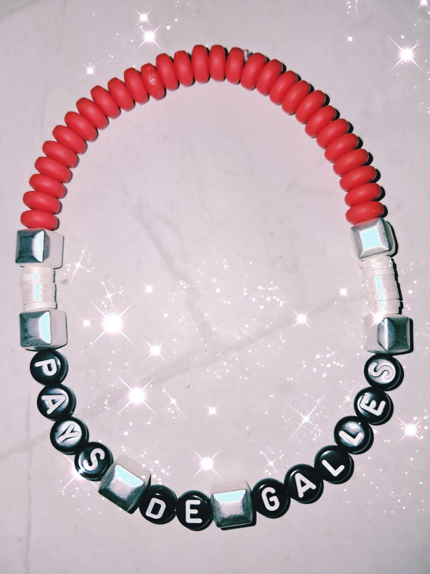 Bracelet homme inspiré de l'équipe du Pays de Galles ,au couleurs rouge et blanc,avec perles carrées en hématite mate argentée. Un bijou sportif ,élégant et moderne,parfait pour les passionnés de rugby Bracelet extensible - Taille XXL