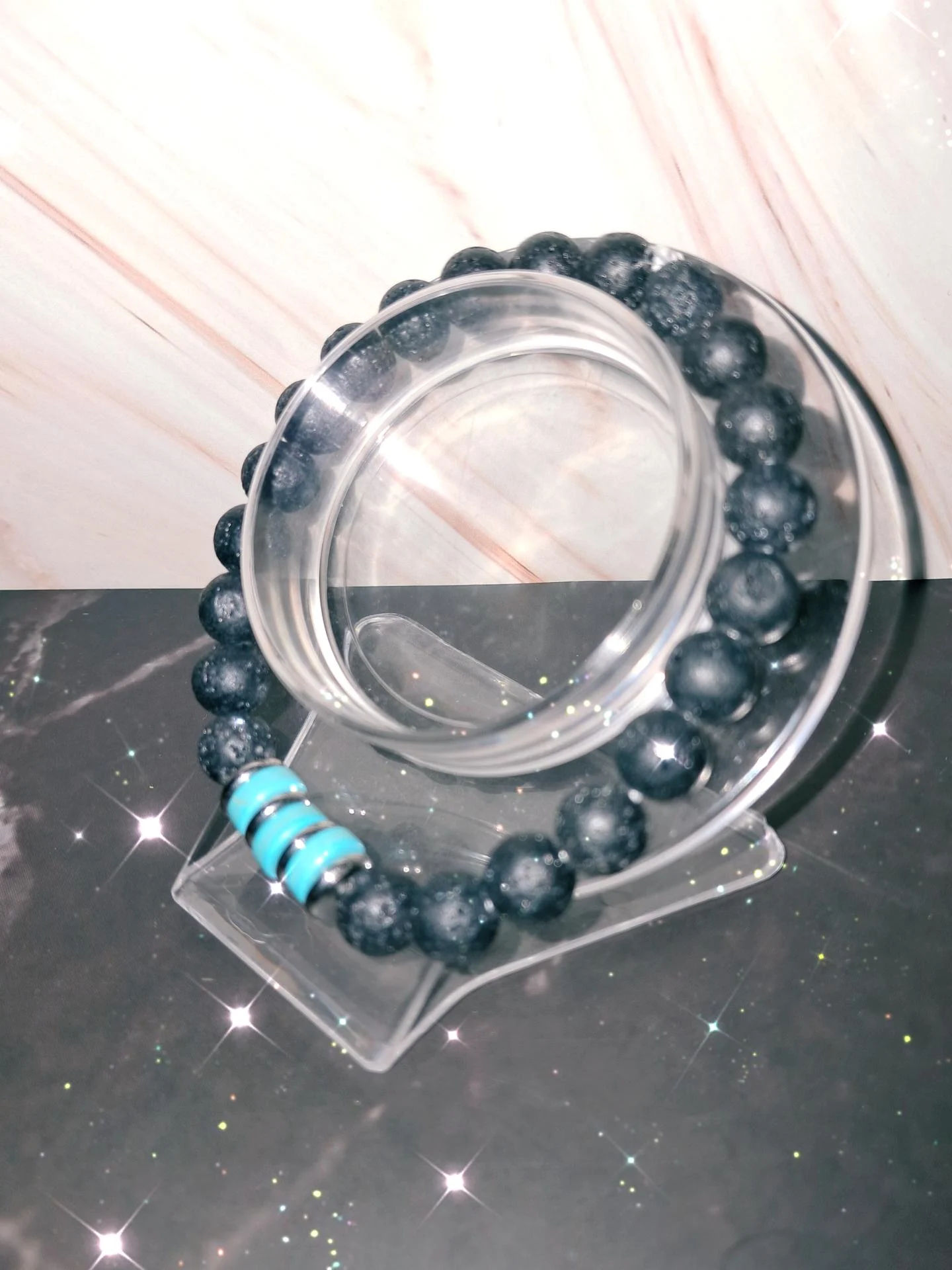 Bracelet homme, extensible ,moderne élégant et intemporel.Il se compose de pierre de lave d'hématite argenté et de turquoise.