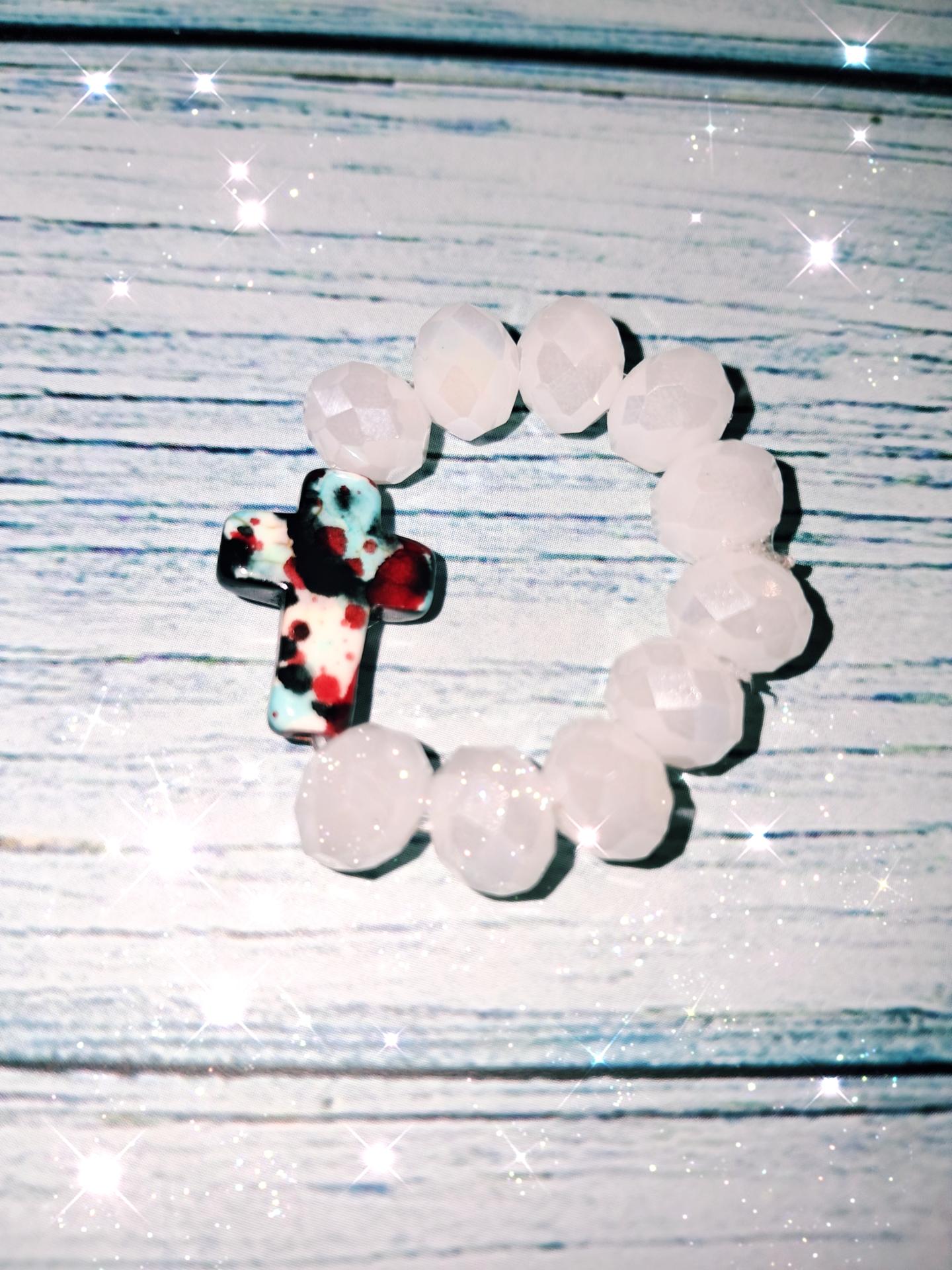 Dizainier ,perles blanches en verre et croix en pierre.Symbole de force et de foi.Parfait pour accompagner la prière quotidenne ou comme bijou spIrituel discret.